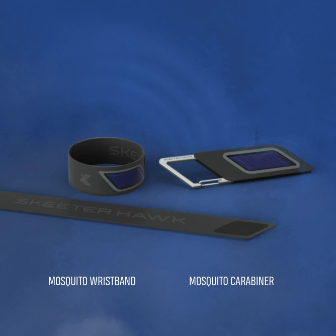 Keep mosquitos away, even on the go. The SKEETER HAWK wearable bracelet and carabiner feature replaceable repellent pucks comprised of proprietary essential oils proven to naturally repel mosquitoes and other flying insects. Each puck lasts 30 days and can be easily replaced. Both wearables have a reflective logo and lettering for increased visibility in low light.