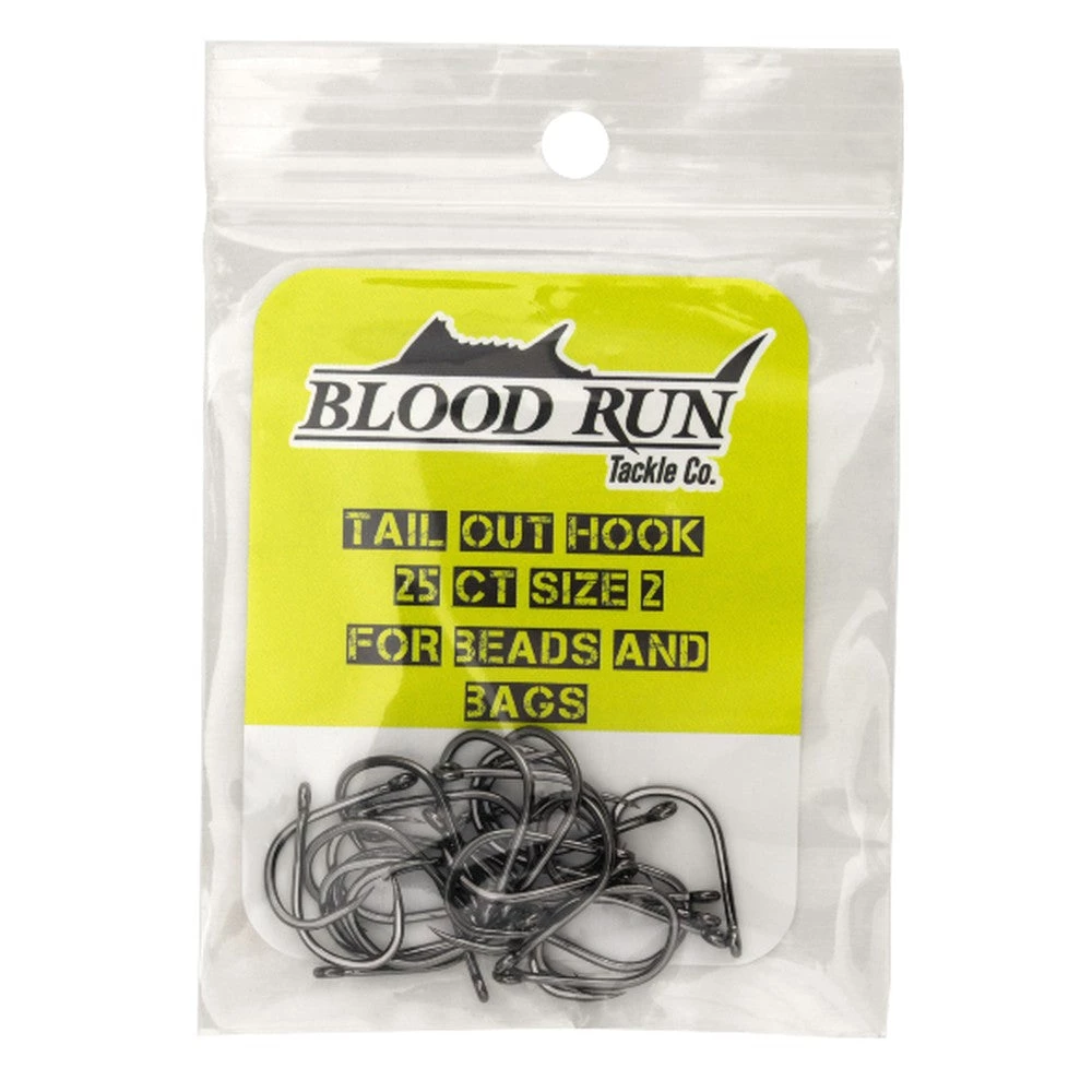 The Tail Out single J style hook by Blood Run Tackle is constructed of carbon black forged steel in an extremely light weight design. Utilizing extra heavy wire to eliminate hook twists and bending on power sets, this chemically sharpened tapered beak hook is designed for float fishing, drifting and live or dead bait dropshotting.