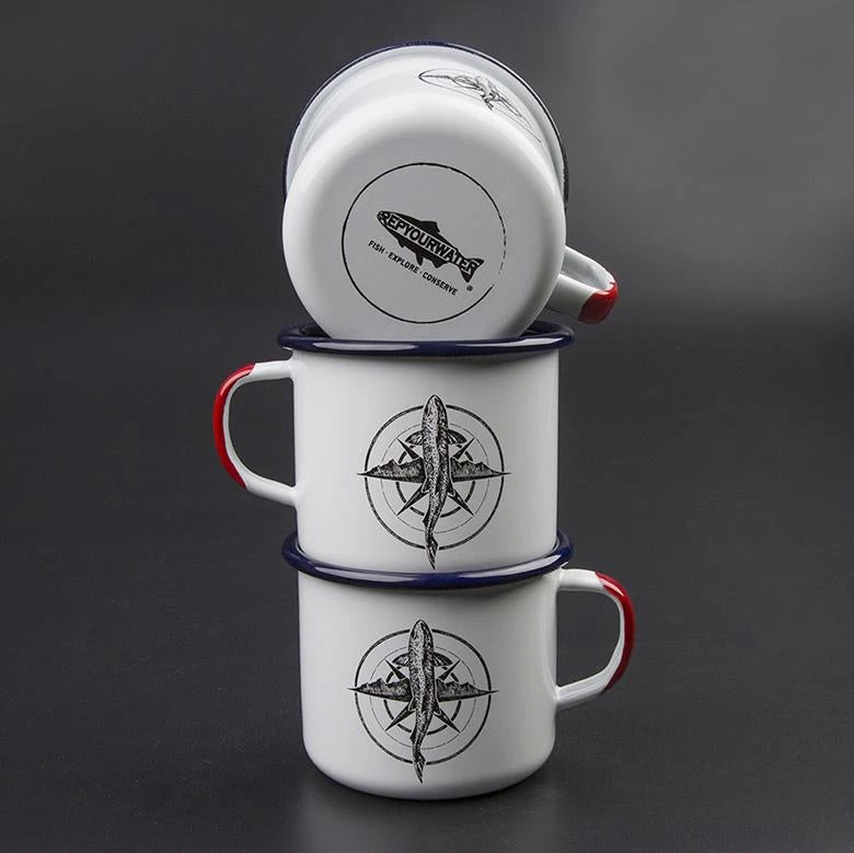 What better way to enjoy your morning coffee or evening beverage of choice than in handmade enamelware showing your love of fishing? Clearly, there isn’t one.