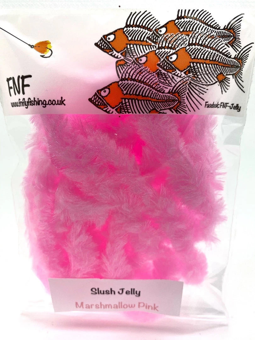 FNF have spent a lot of time perfecting an easy to use 15mm fritz/chenille that gives a slush like appearance in the water. A mixture of jelly fibres and a candy floss like compound gives this material its slushy appearance when wet. Slush Jelly is a 15mm fritz/chenille mounted on a micro core.