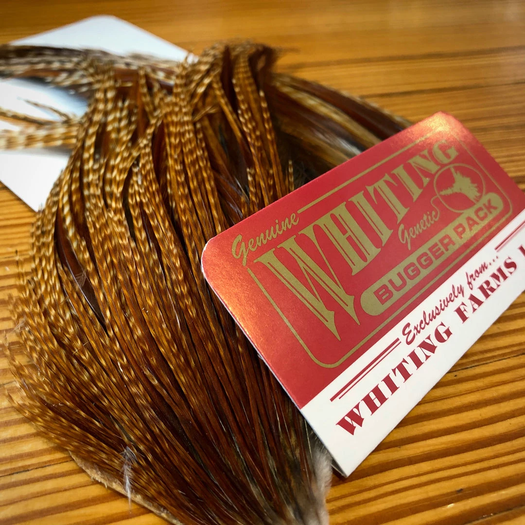 Bugger packs need no introduction. Instead, we’d like to tell you that these might be our favorite whiting product because of their versatility. Sure, you can tie wooly buggers and other streamers but most packs come with a smaller patch of feathers too that are perfect for using on dry fly patterns for our big mayflies.