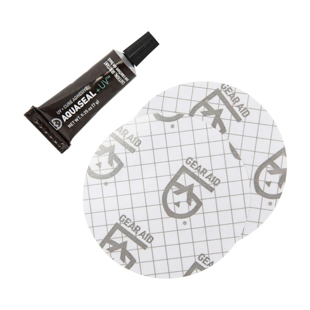 - Kit includes: 2 patches (3″ diameter) and 0.25 oz tube of AQUASEAL® UV