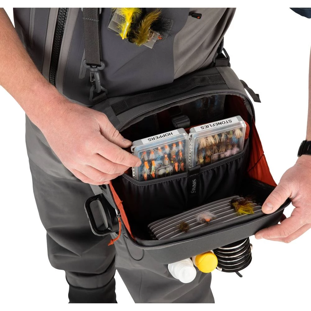 - Accessory attachments include Tippet Caddy and Floatant Holster, internal keyclip
